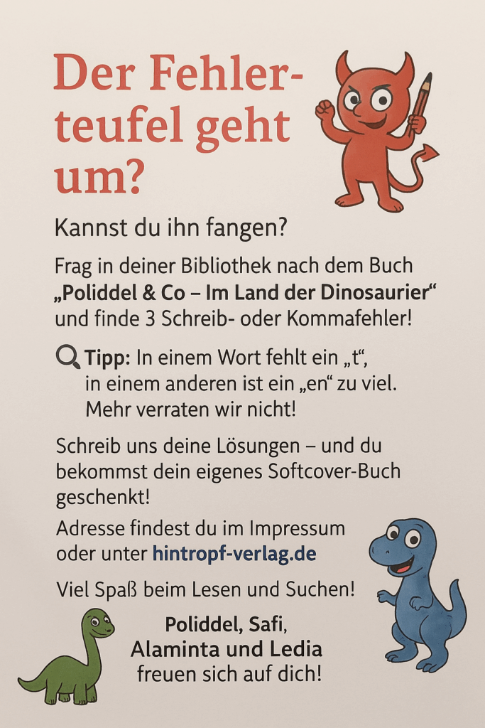 Poliddel & Co, im Land der Dinosaurier, das erste Buch unserer Edition Tintenfleck Kinder-Jugendbuchreihe.